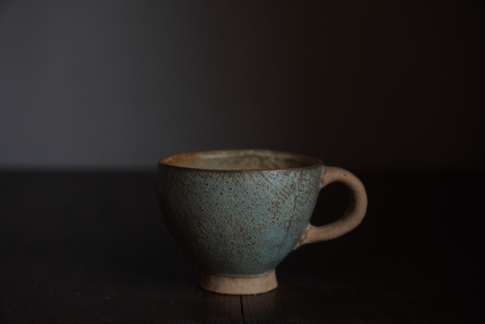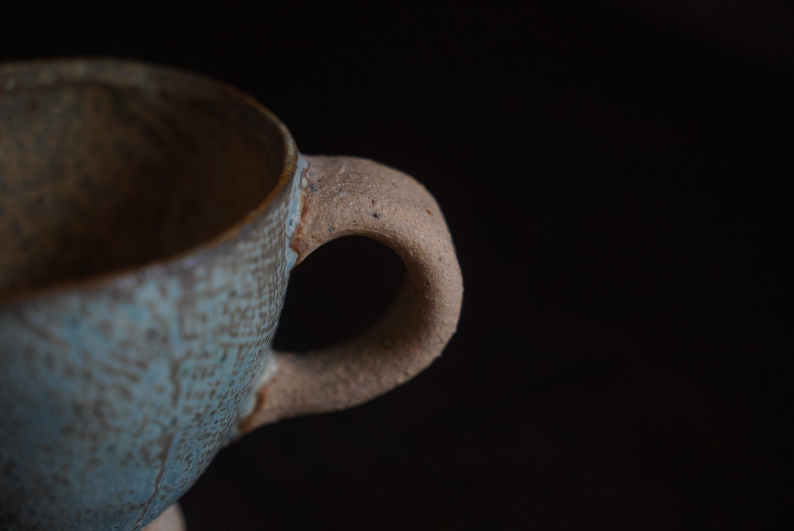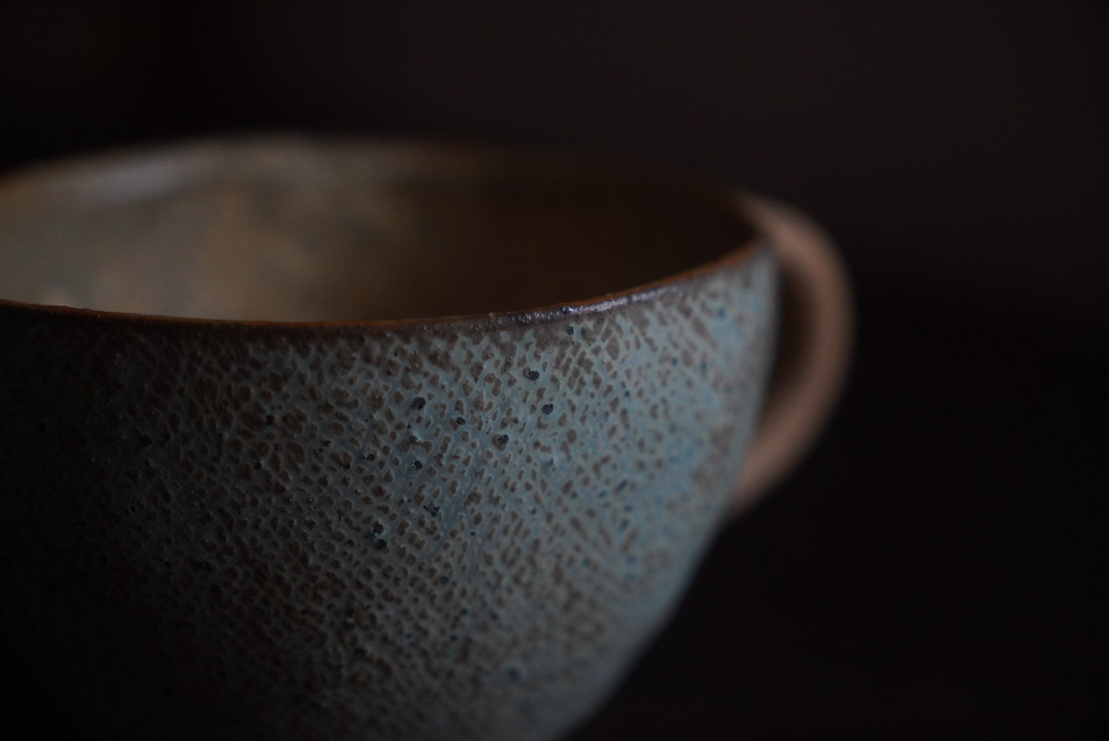 素地に布をあてて模様をつける「布目」という技法を使って、表面には細かな網目模様が施されています。マットな色味に焼き色のような茶色が所々に表れています。