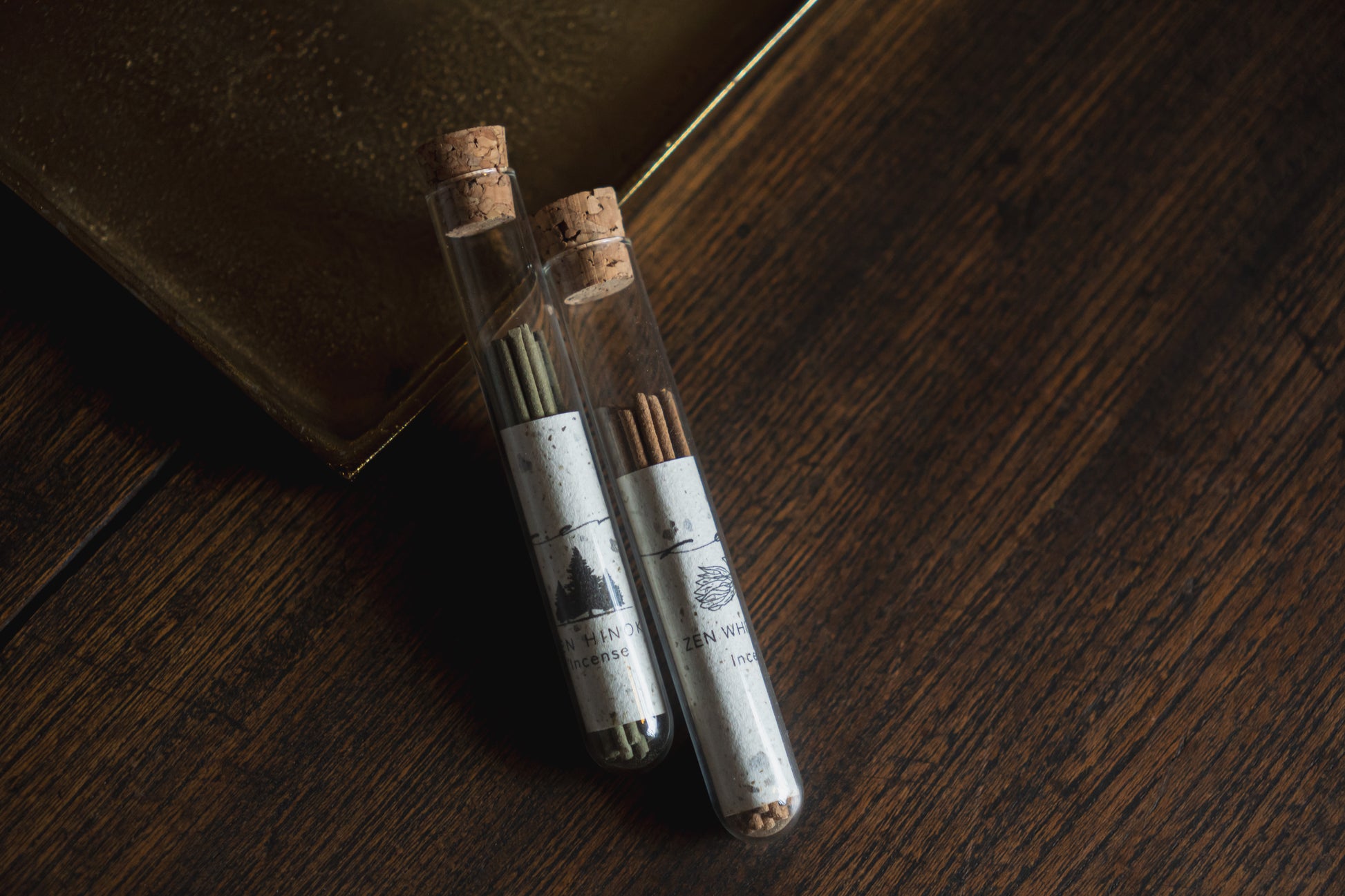 オーガニックホワイトセージを40%配合したスティック型の浄化用インセンスと真鍮のお香立てセットです(※お香の試験管が刺してあるウッドフワラーベースはディスプレイのため販売しておりません) ドライハーブだと煙の持続性が低く忙し女子にはハードルが高いと言う声にお応えし、デイリー使いしやすいようスティックタイプにしました 天然素材100%で、香りもホワイトセージそのものです
